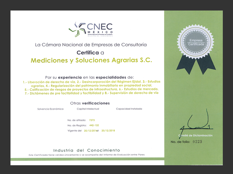 Realizar nuestra labor de forma ética y profesional. Seguir construyendo rutas alternas para solucionar problemas de la nueva realidad legal nacional. Generar una confianza y reputación impecables a tal grado de ser reconocidos como el grupo lider del derecho de vía en México.
